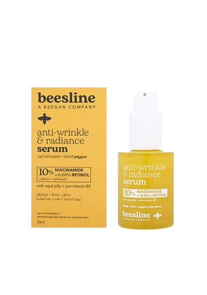 بيزلين سيروم مقاوم للتجاعيد والنضارة هو تركيبة خفيفة الوزن مصممة لتحسين لون البشرة وملمسها وتقليل علامات التقدم في السن. يحتوي على 10% نياسيناميد يساعد في تحسين الخطوط الدقيقة وتوحيد لون البشرة. كما يحتوي على جرعة مبدئية من 0.05% ريتينول، مما يعزز تجديد البشرة ويقلل التجاعيد. تعمل المكونات الإضافية مثل غذاء ملكات النحل وبروفيتامين ب5 على تقوية الحاجز الطبيعي للبشرة، بينما يوفر مستخلص الألوة فيرا ترطيبًا مهدئًا. مناسب لجميع أنواع البشرة، بما في ذلك البشرة الحساسة. يمكن ملاحظة النتائج خلال أسبوعين من الاستخدام.