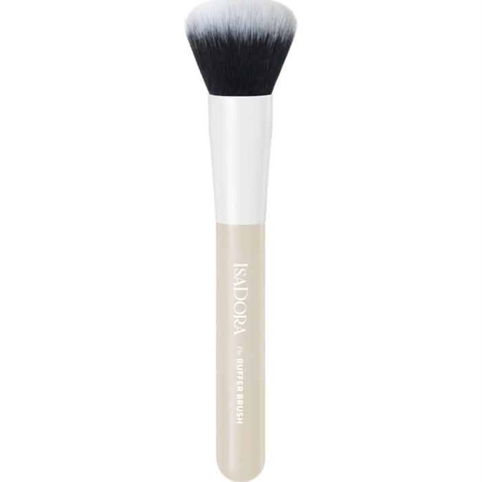فرشاة إيزادورا "ذا بافر" هي فرشاة مقببة الشكل، كثيفة الشعيرات، متينة. تُعد هذه الفرشاة مثالية لوضع منتجات الأساس، مثل البرايمر وكريم الأساس، سواءً كان سائلاً أو كريمياً مضغوطاً. شعيراتها المقببة، كثيفة الشعيرات، متينة، مثالية لدمج المكياج بسلاسة، وتثبيت منتجات الأساس على البشرة.