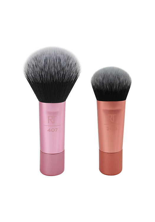 تحتوي المجموعة على الثنائي المثالي من الفرش للحصول على مظهر خالٍ من العيوب، الحجم المناسب للسفر لطيف للغاية وعملي، تتضمن فرشاة بطرف فاخر كبير يساعد في وضع أحمر الخدود أو البرونزر أو بودرة التثبيت، فرشاة ألياف معبأة بكثافة للحصول على لمسة نهائية خالية من العيوب وتغطية متوسطة إلى كاملة لتطبيق الأساس السائل أو الكريمي.
