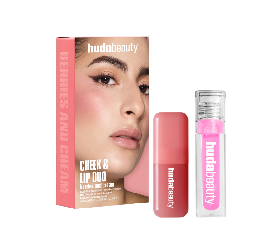 HUDA BEAUTY CHEEK&LIP DUO BERRIES AND CREAM BLUSH 4.5 ML +LIP OIL 3.9 ML